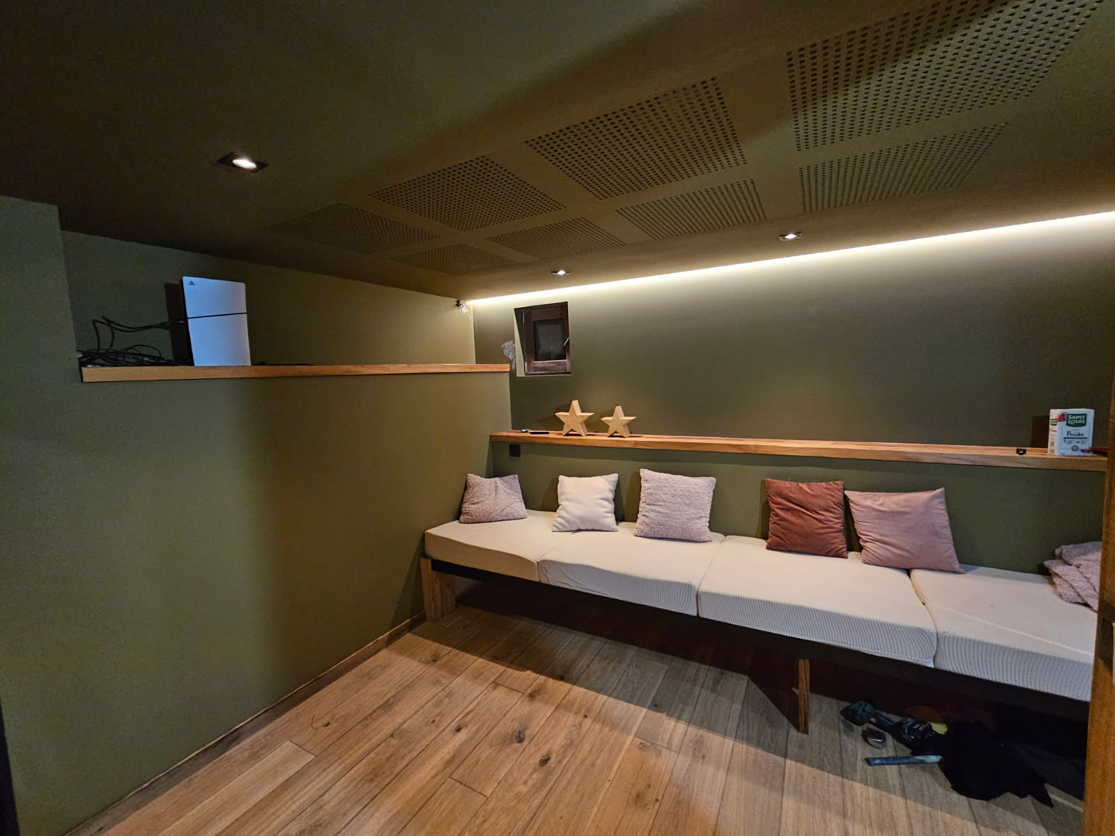 - Une chambre avec lit double 140*190 cm, coin douche avec lavabo, placards de rangement, télévision ;