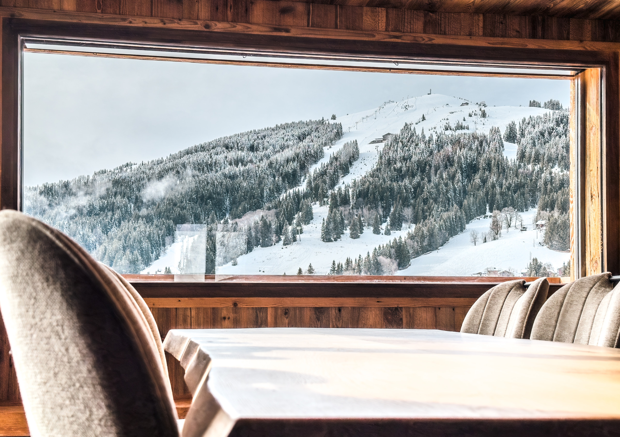 - Salle-à manger avec une vue exceptionnelle sur le Mont-Chéry ;